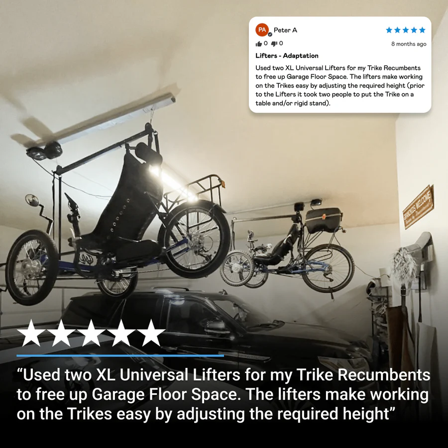 - Bicycles, kayaks, and canoes: Safely store your recreational gear overhead.